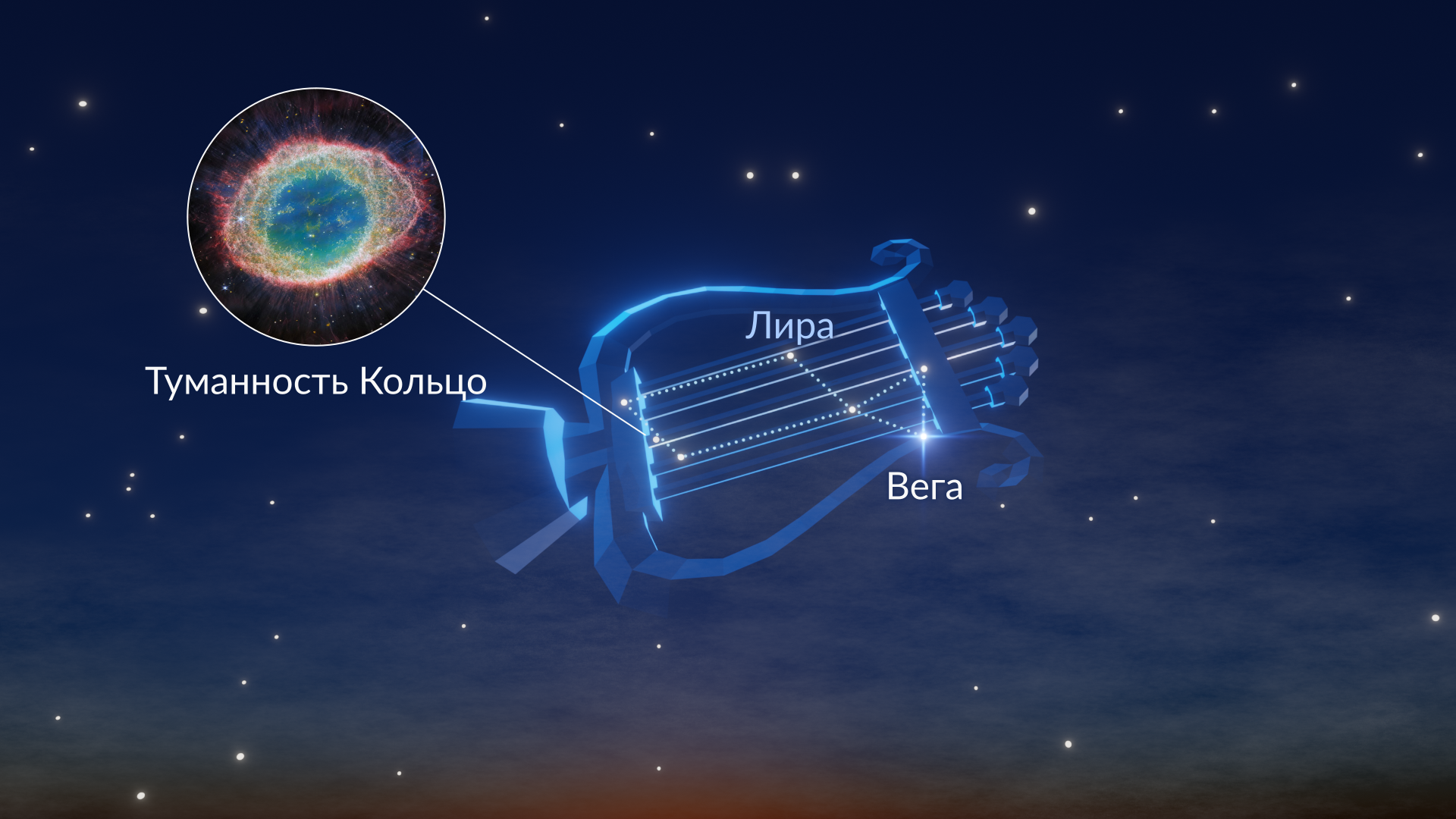 В ясную темную ночь летом в Северном полушарии посмотрите прямо над головой и найдете Вегу — самую яркую звезду в этой области неба. Когда глаза привыкнут к темноте, рядом с Вегой вы заметите небольшой параллелограмм из более тусклых звезд, к одному из углов которого примыкает крошечный треугольник — это и есть созвездие Лиры. Кроме того, Вега находится в центре Летнего треугольника между Денебом и Альтаиром.
