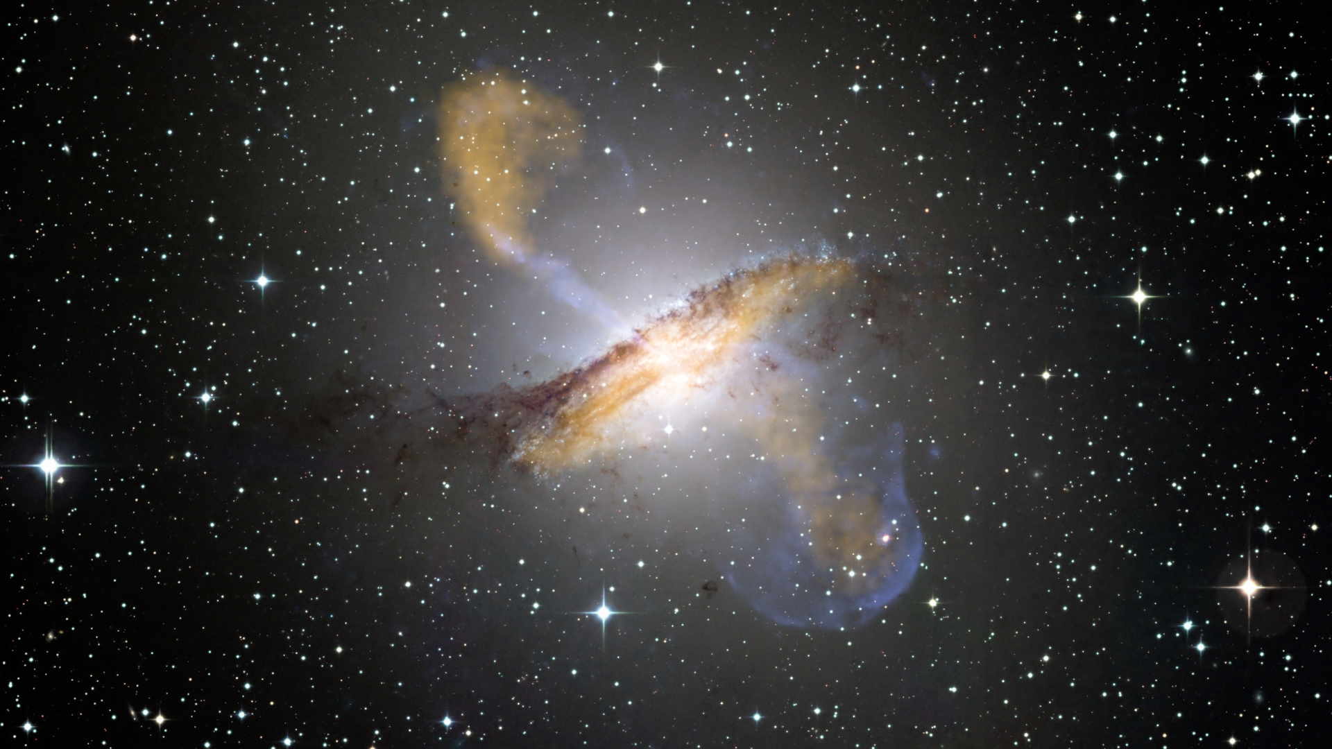 Центавр A (NGC 5128, Caldwell 77) – галактика со вспышкой звездообразования, пятая по яркости галактика, видимая с Земли. В её центре находится сверхмассивная чёрная дыра массой 50–60 миллионов солнечных масс, а сама галактика пережила как минимум две вспышки сверхновых. При звёздной величине около 6,8 она может быть видна в бинокль как тусклое овальное пятно. В телескоп при хороших условиях можно различить знаменитую пылевую полосу, пересекающую центр галактики и придающую ей характерный облик.