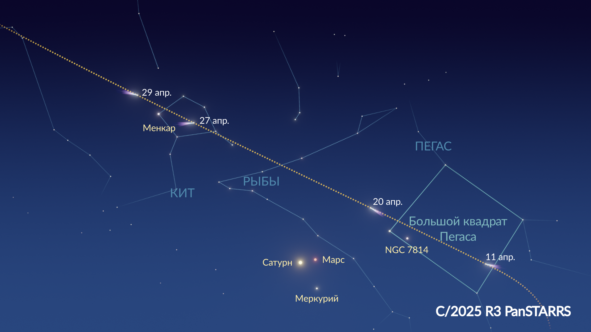 Комета C/2025 R3 (PanSTARRS) в апреле 2026 года: от Пегаса до Тельца