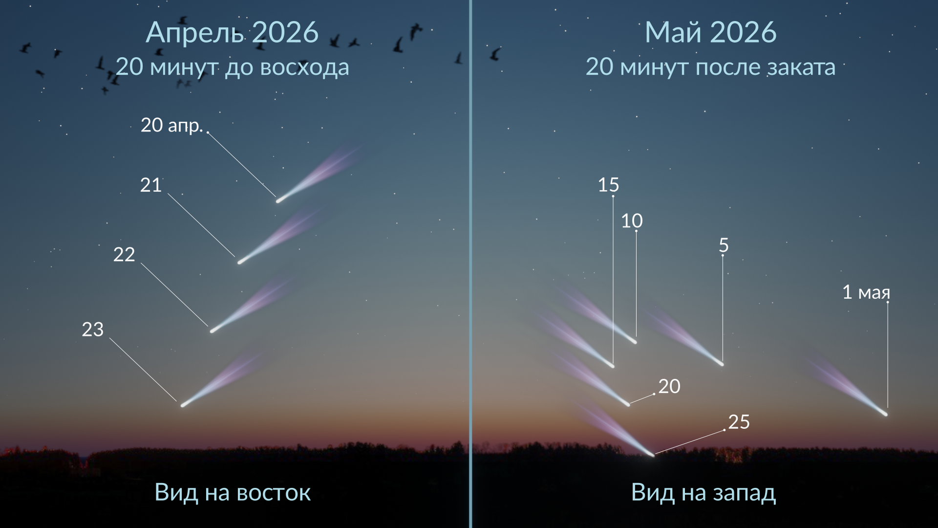 - 17 апреля 2026 – новолуние: лучшее время для поиска кометы, небо будет максимально темным.
