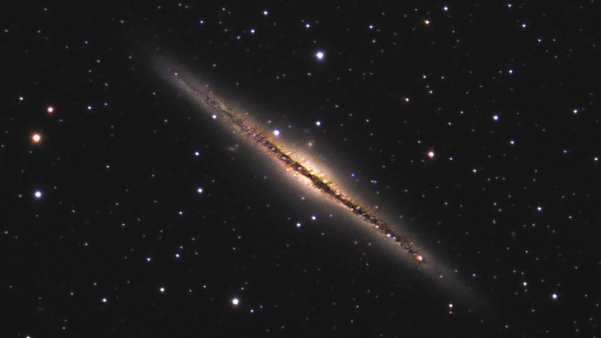 - Описание: NGC 891 – спиральная галактика, расположенная примерно в 30 миллионах световых лет от нас в созвездии Андромеды. С Земли она видна практически с ребра.