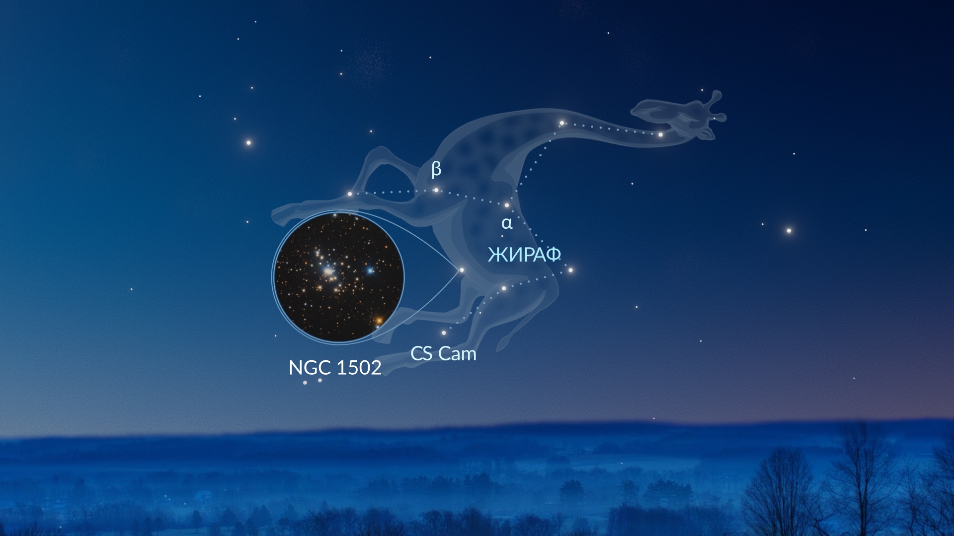 - Заметный объект глубокого космоса: Скопление Золотая Арфа (NGC 1502, зв. вел. 6,0)