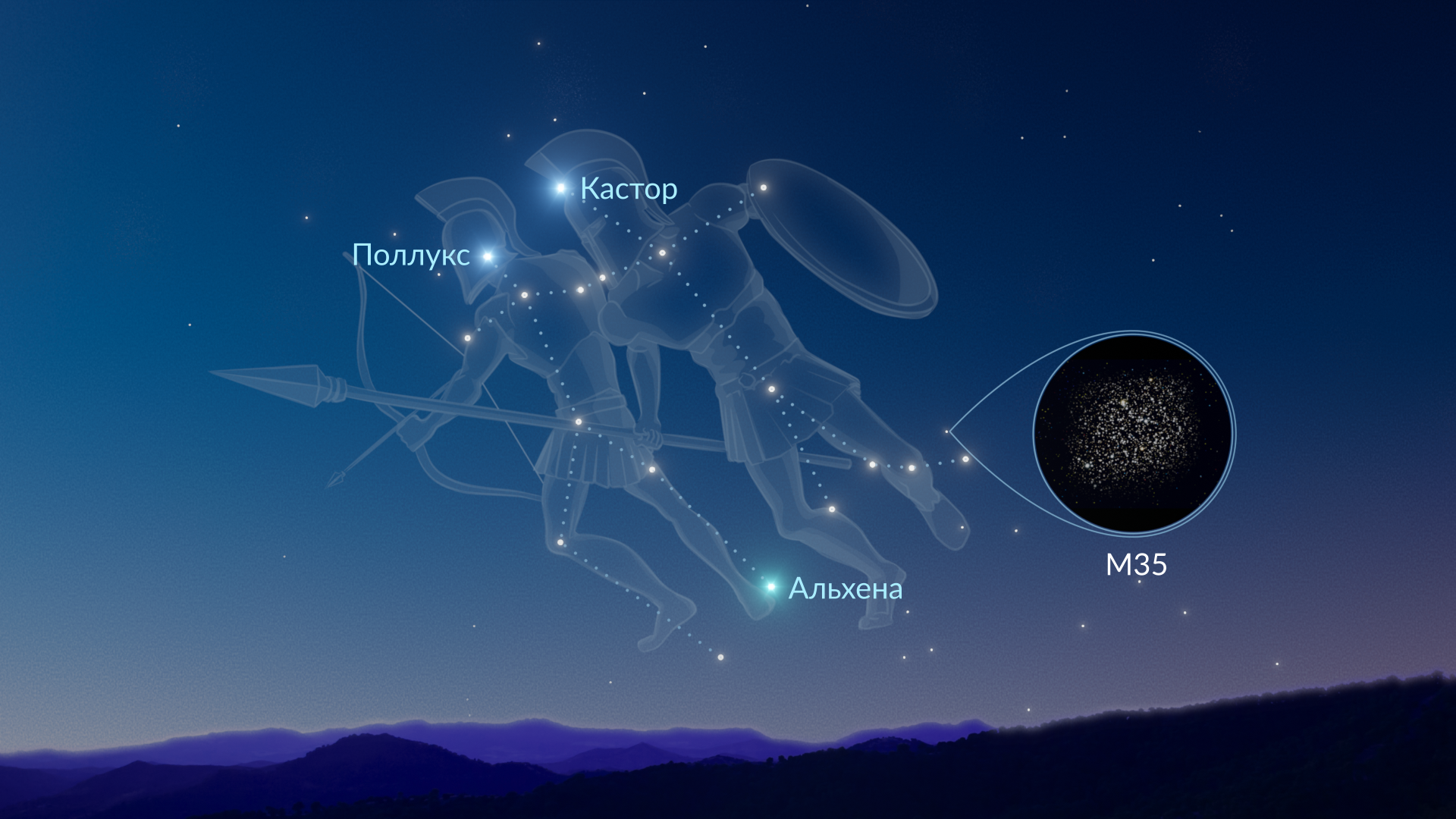 - Заметный объект глубокого космоса: Скопление Пряжка (M35, зв. вел. 5,1)