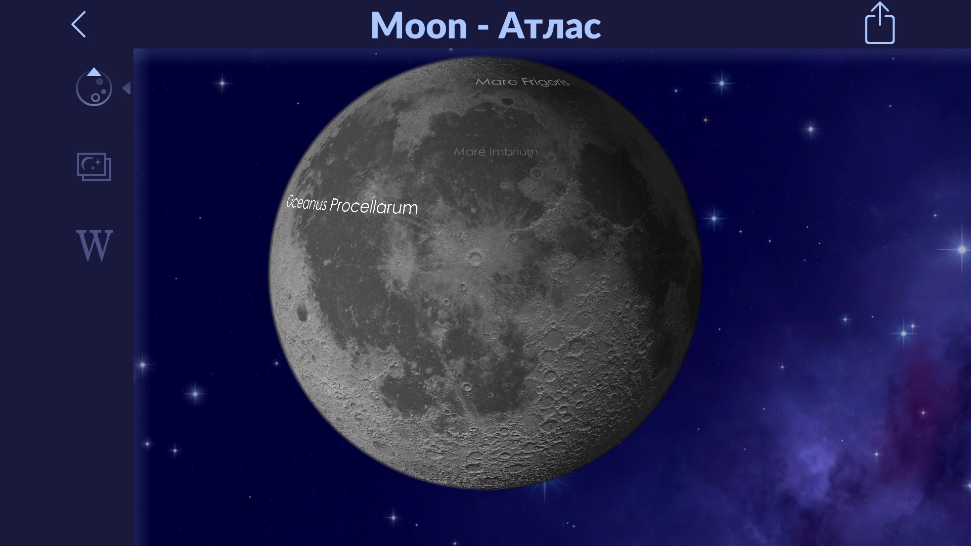 Галилео Галилей первым увидел, что поверхность Луны не гладкая, как считалось ранее, а покрыта горами и впадинами. Он наблюдал лунные кратеры, долины и другие особенности рельефа, сделав точные зарисовки и описания. Хотите тоже исследовать лунный ландшафт? Откройте Лунный атлас в приложении Star Walk 2 и узнайте названия лунных гор и «морей».