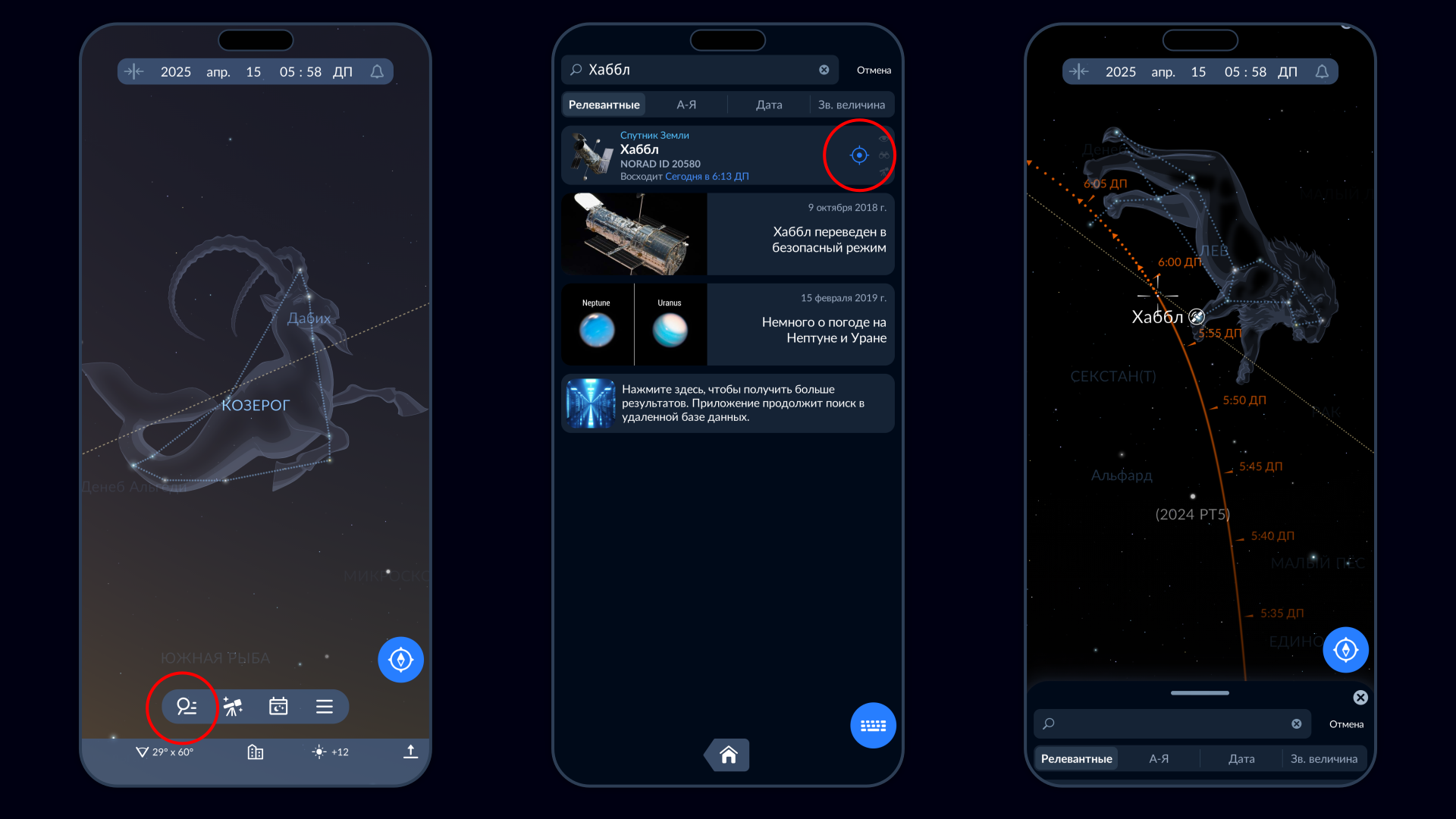 Космический телескоп “Хаббл” крут не только тем, что дает нам потрясающие снимки космоса; он также подарил нам множество самых умопомрачительных открытий! С его помощью ученые доказали, что Вселенная расширяется и открыли темную энергию и темную материю, а также смогли подтвердить существование сверхмассивных черных дыр. “Хаббл” полностью изменил наше представление о космосе. И хотя путешествие“Хаббла” еще не закончено, люди уже готовят новые космические телескопы, которые сохранят и преумножат его достижения. Попробуйте найти “Хаббл” на небе с помощью приложения Sky Tonight!