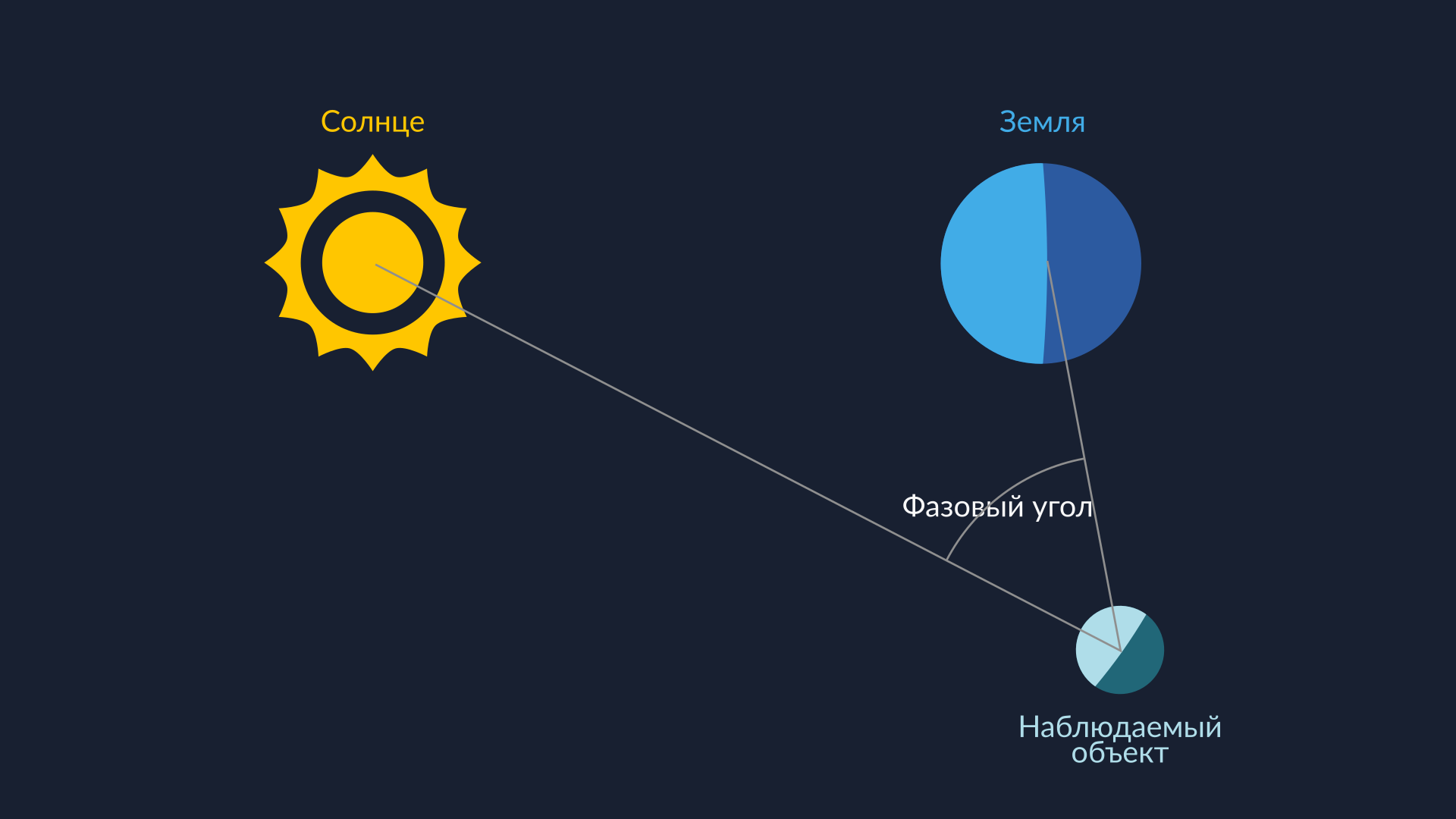 Фазовый угол оказывает значительное влияние на яркость кометы. Когда комета находится в противостоянии с Солнцем (на угловом расстоянии в 180° от Солнца, на одной линии с Землей), фазовый угол становится очень маленьким, и отражательная способность поверхности кометы резко возрастает.