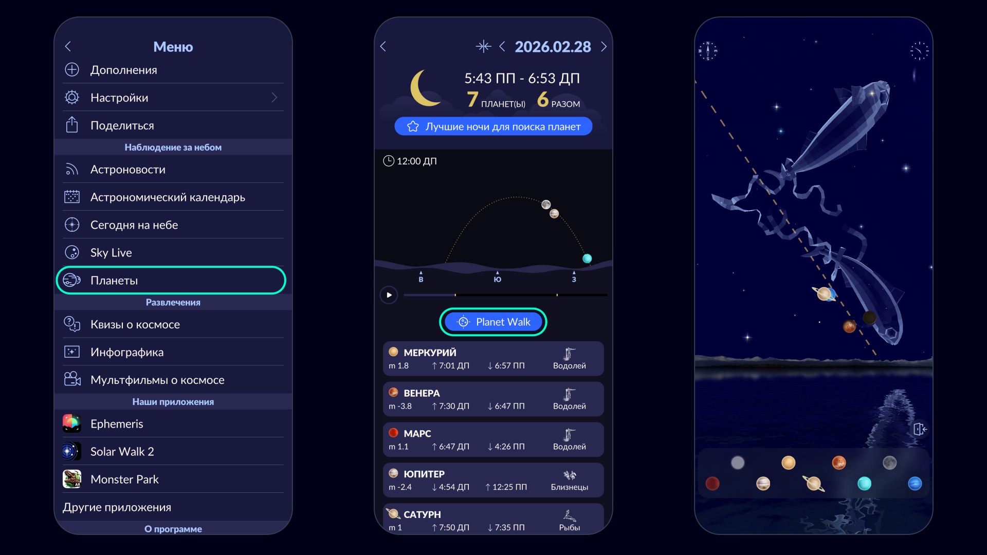 Хотите точные указания для вашего местоположения в реальном времени? Скачайте бесплатное приложение Star Walk 2 и используйте функцию Planet Walk, чтобы пройти по небу от планеты к планете.