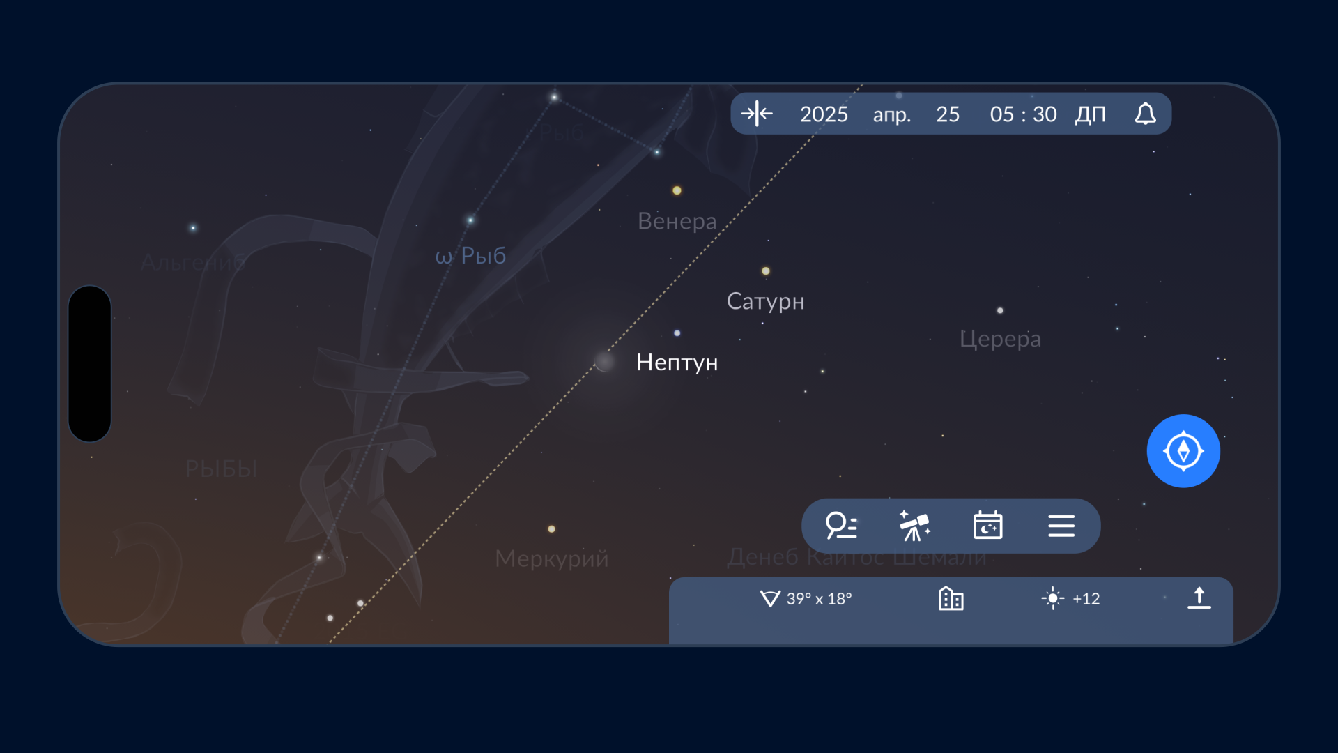 Конец апреля 2025 года — лучшее время для наблюдения Венеры! Сияя с впечатляющей звёздной величиной -4,8, планета появится на утреннем небе рядом с Луной, Сатурном, Меркурием и Нептуном. Ищите Венеру непосредственно перед восходом Солнца — она будет сиять на восточном горизонте как ослепительная «утренняя звезда». Чтобы вам было проще найти Венеру и другие объекты рядом с ней, воспользуйтесь бесплатным астрономическим приложением Star Walk 2.