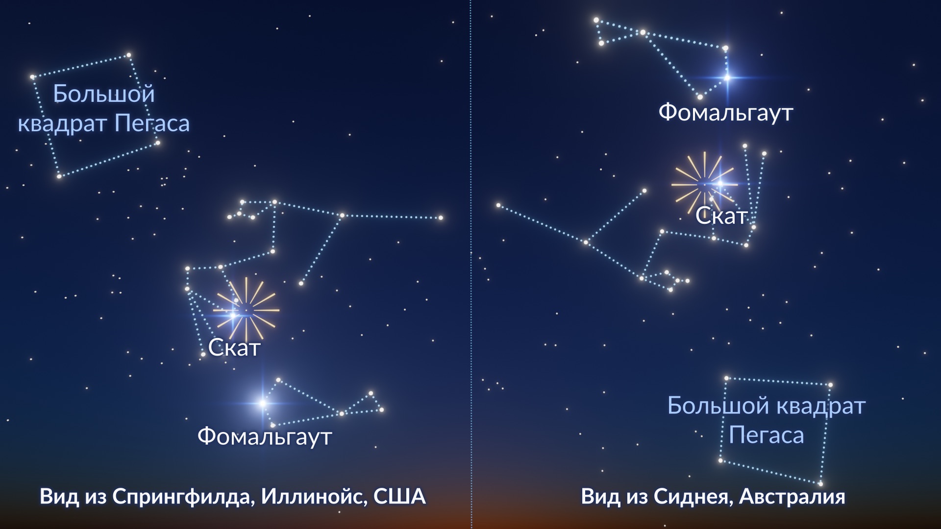 Южные дельта-Аквариды лучше всего видны в Южном полушарии, где радиант (в созвездии Водолея) поднимается выше и дольше остается над горизонтом в течение ночи. Однако совсем не обязательно находиться в Южном полушарии, чтобы насладиться этим метеорным потоком. Если вы живете на юге России, вы тоже сможете увидеть дельта-Аквариды, особенно если найдете место вдали от городской засветки и будете смотреть на небо перед рассветом.