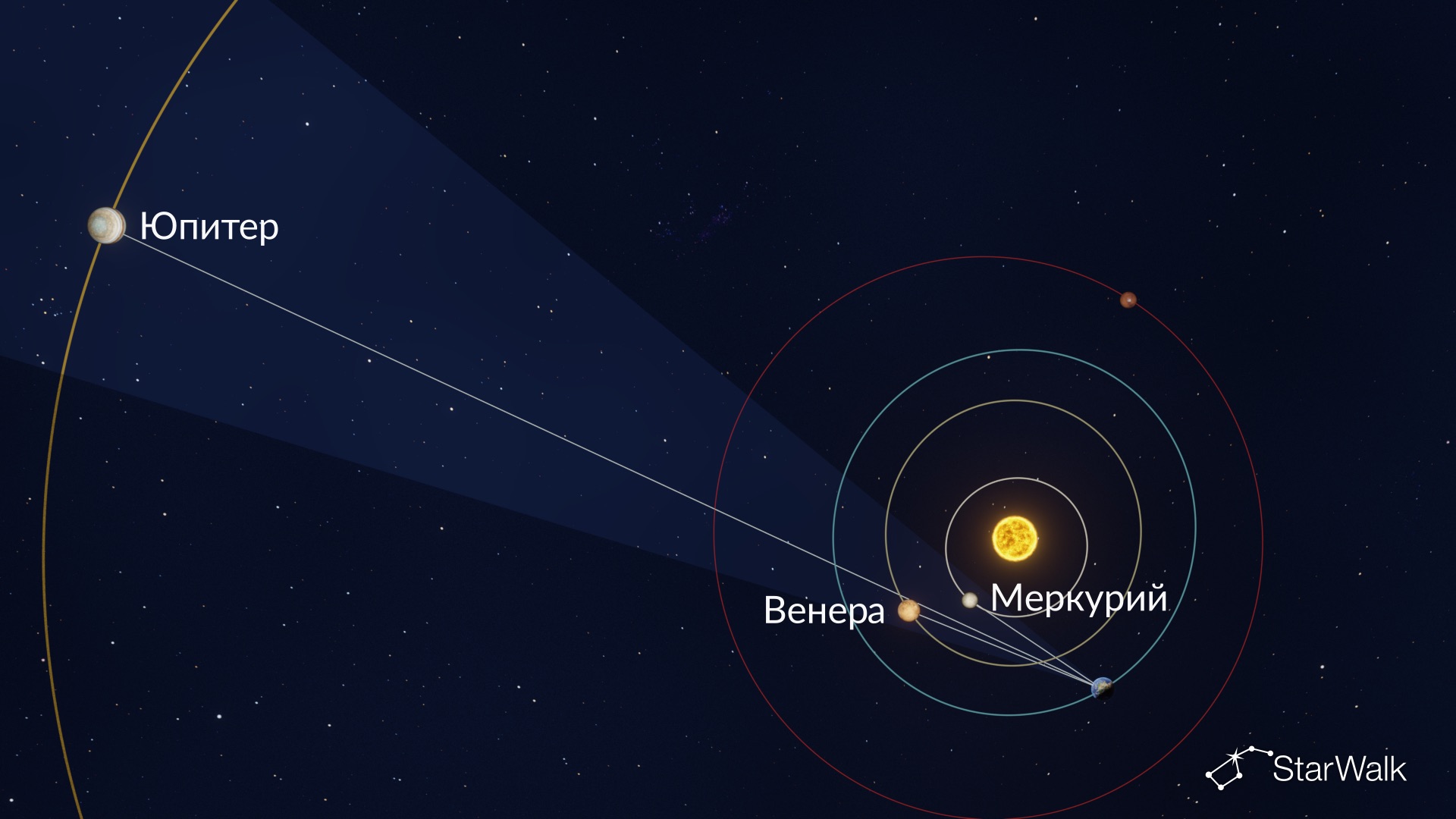 Выравнивание планет (часто называемое «парадом планет») — это астрономический термин, обозначающий явление, когда несколько планет собираются в небольшой области неба. Следующее выравнивание планет произойдет около 12 июня 2026 года. Три планеты — Меркурий, Венера и Юпитер — выстроятся на вечернем небе. Скачайте бесплатное приложение для наблюдения за звездами Star Walk 2, чтобы легко найти все планеты.