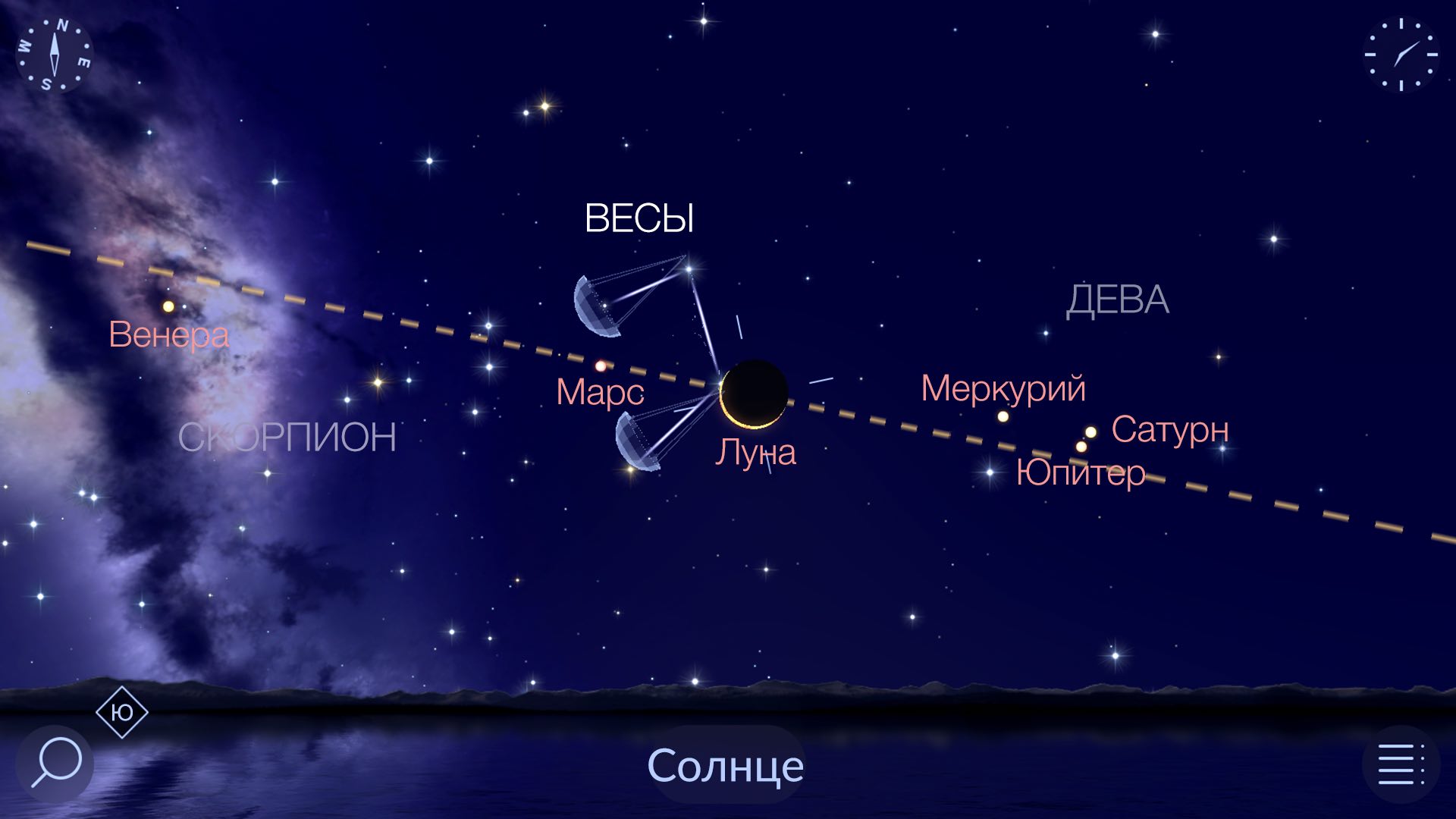 - Шаг 3: Двигайте устройство вдоль этой линии, и вы увидите несколько больших точек по сторонам эклиптики – это планеты.