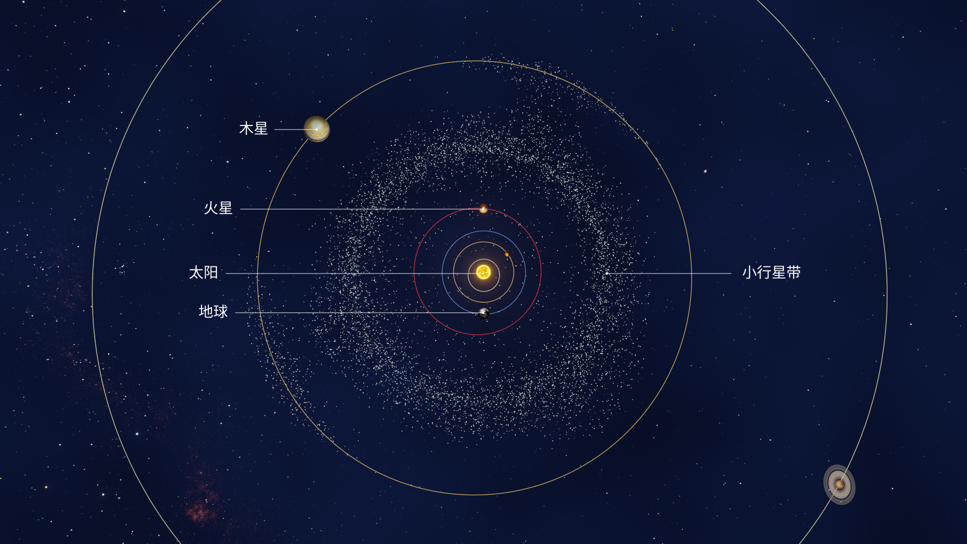小行星带,也叫主小行星带,是位于火星和木星之间、包含大多数已知小行星的区域,它标志着内部岩质行星与外部气态巨行星之间的分界。