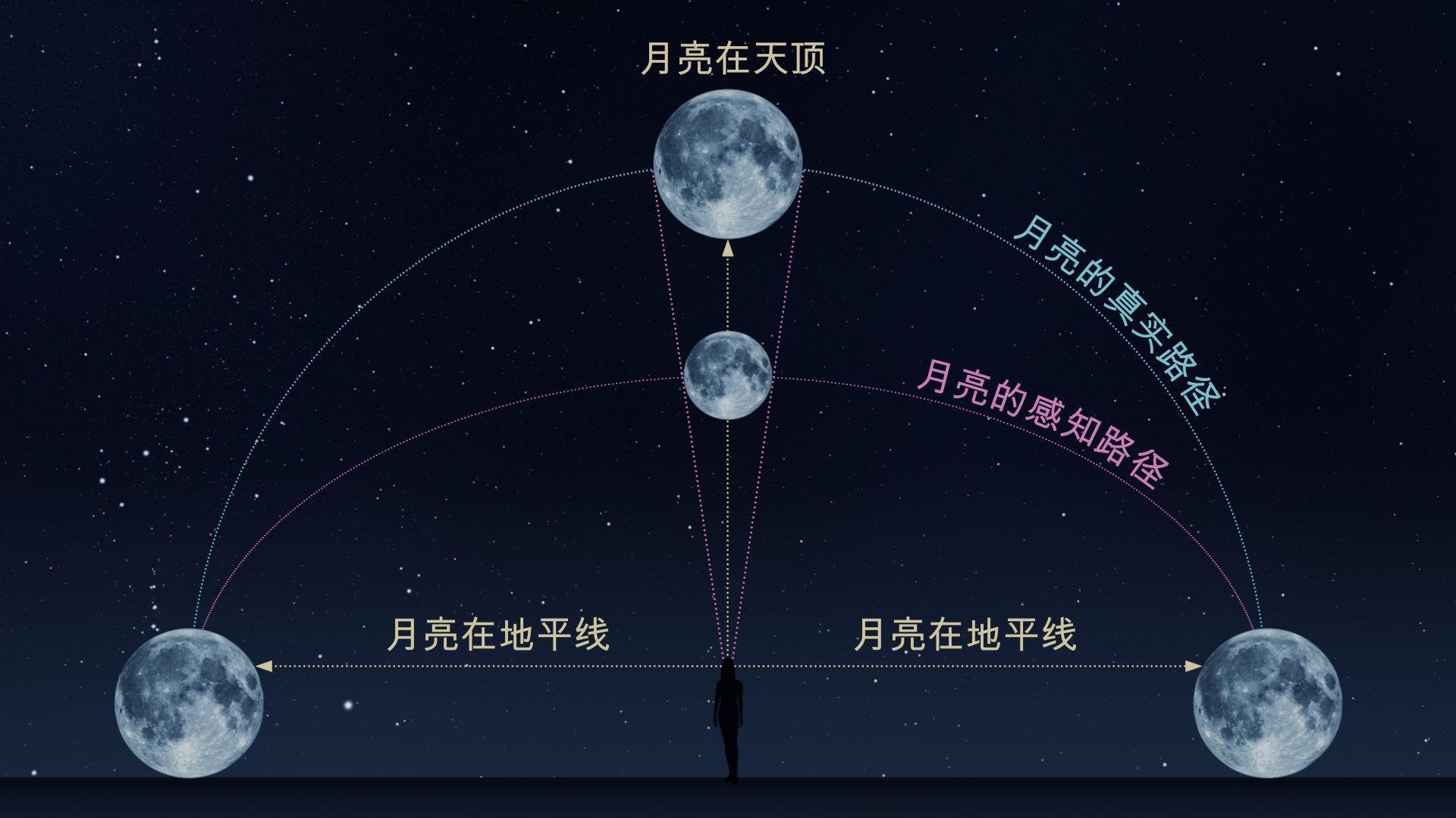 - 这是月亮错觉,就是我们大脑的诡计让月亮在地平线上显得更大。