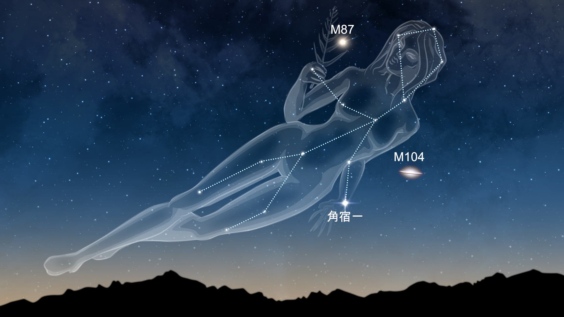 室女座是全天第二大的星座,以其明亮的恒星角宿一闻名。它还因拥有许多梅西耶天体而著称,包括适合用望远镜观测的射电星系室女座A(M87)和草帽星系(M104)。若想查看完整列表,请打开Sky Tonight,找到室女座并点击其名称。在“Info”选项卡中,点击图片下方“+更多”按钮。你将看到与室女座相关的天体列表。点击天体名称旁边的蓝色瞄准图标,即可查看它在天空中的位置。