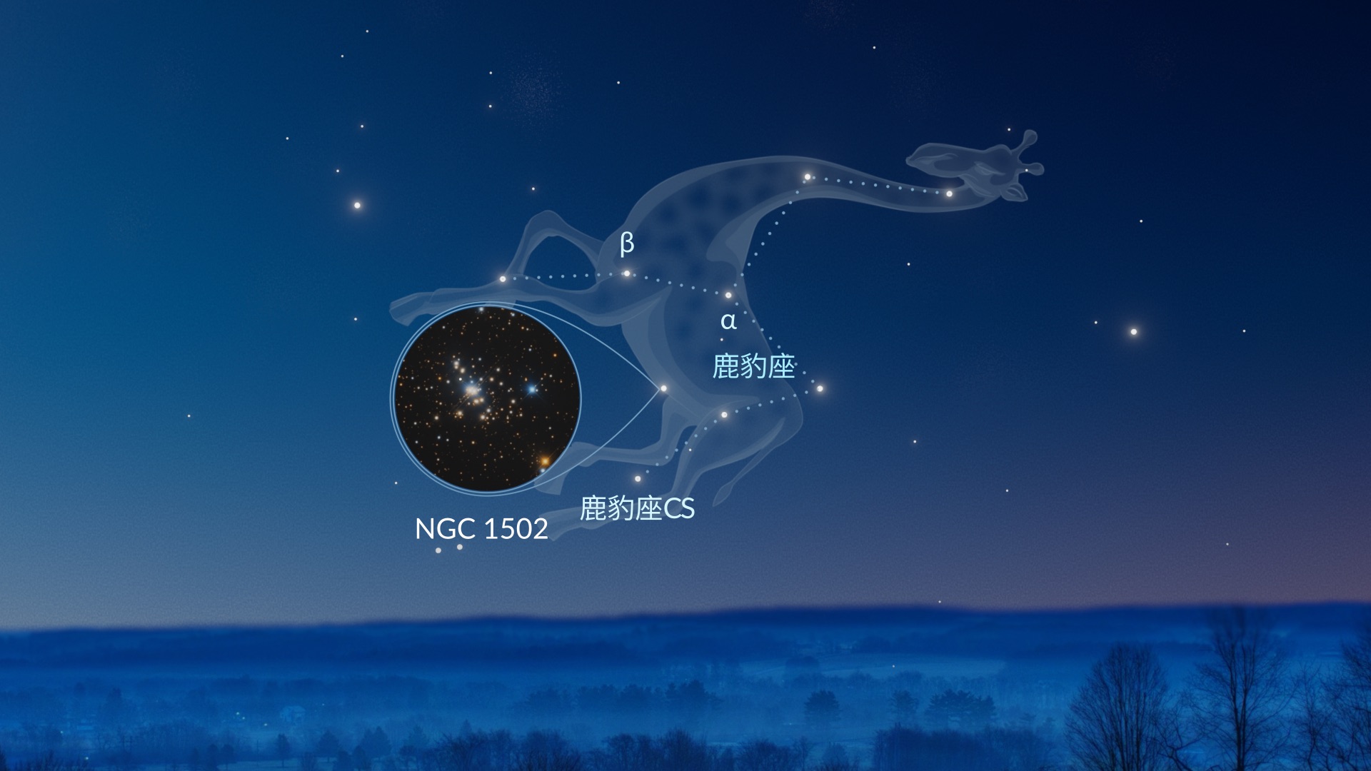 - 著名深空天体:金竖琴星团(NGC 1502,视星等6.0)