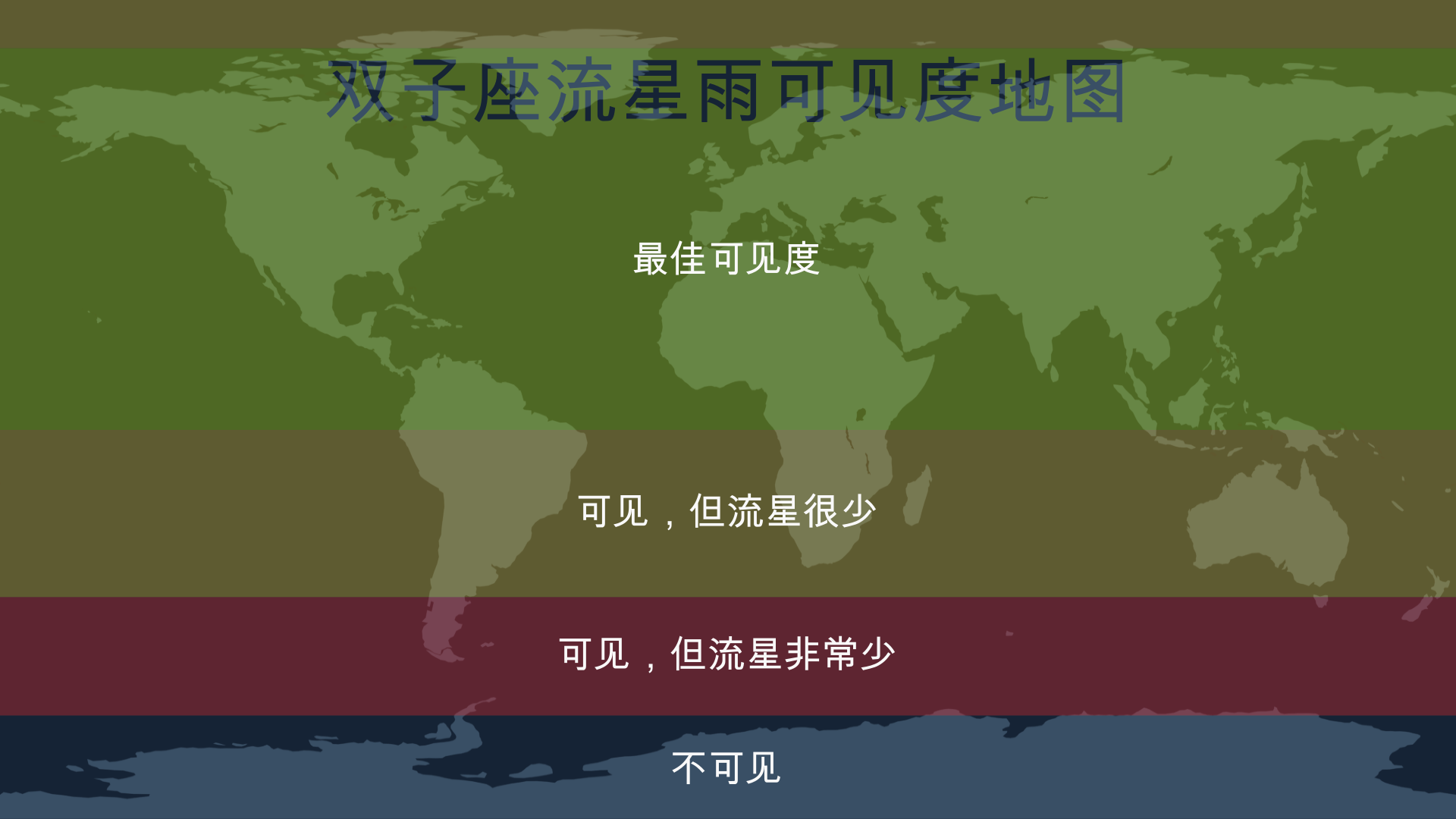 在南半球,辐射点要到当地午夜前后才出现,因此最佳观测时段是12月14日午夜到拂晓前,活动也会在当地时间凌晨2点左右达到高峰。