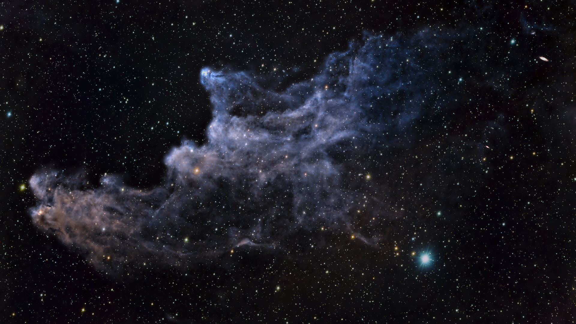 幽灵星云是一团位于约1200光年外的反射星云。它呈现出尘埃卷须与嵌入的年轻恒星,构成了一个诡异的幽灵般外形。它位于仙王座中的鸢尾星云附近,最佳观测时间为8月至11月,当该星座位于高空时观测效果最佳。这也是一个令人惊叹的天文摄影目标——在黑暗、晴朗的天空下,你可能捕捉到柔和发着红色和棕色光的幽灵形状。