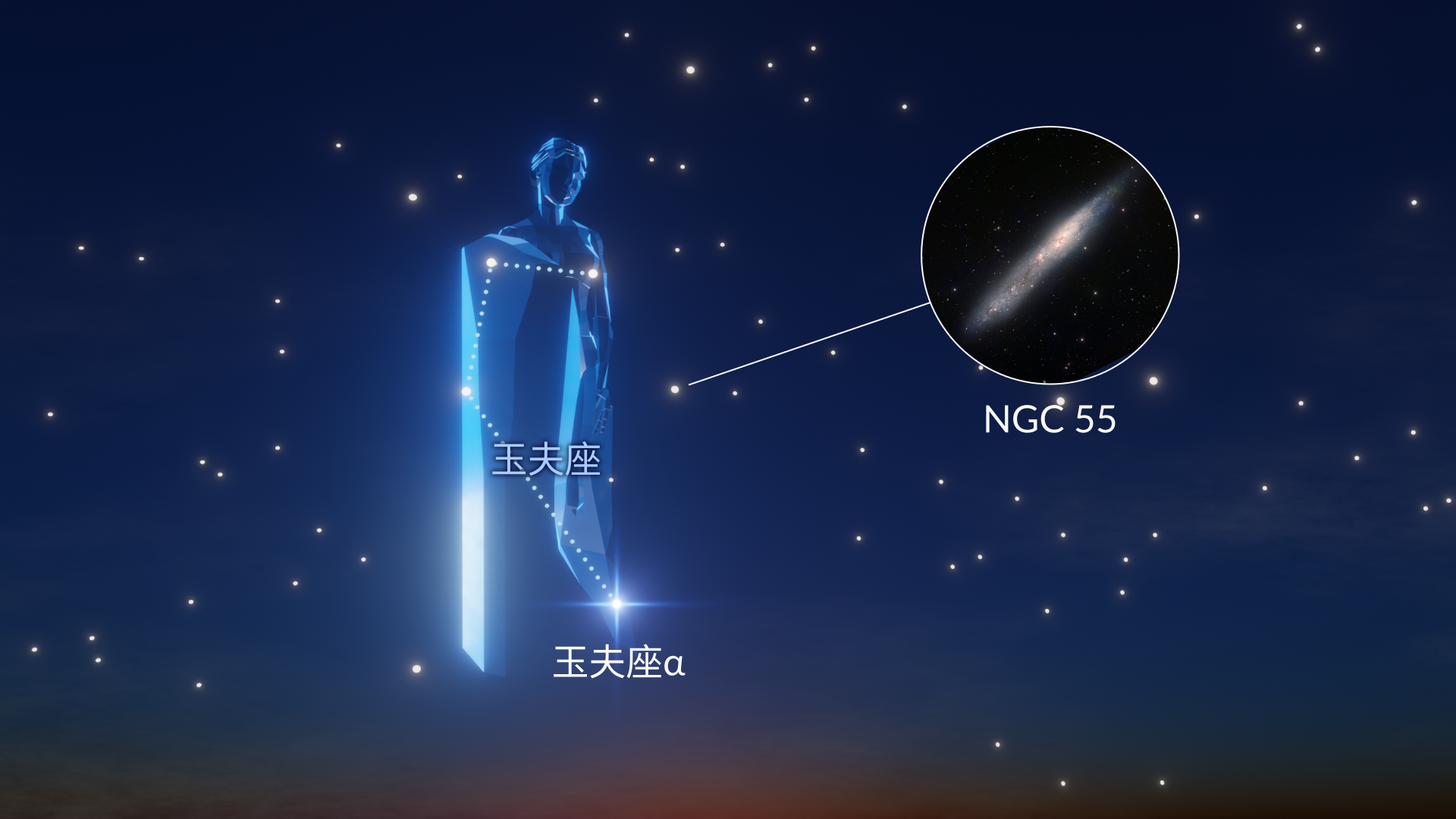 - 最佳深空天体:珍珠链星系(NGC 55,亮度7.8等)