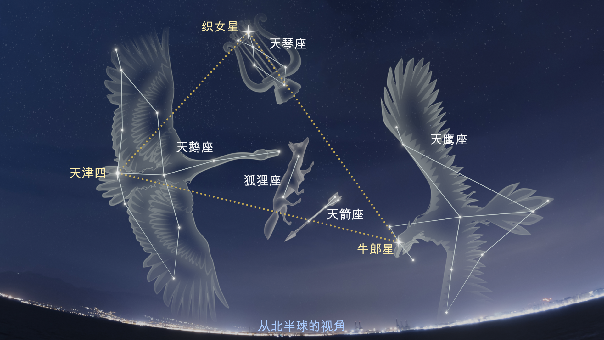 - 构成夏季大三角的恒星及其星座