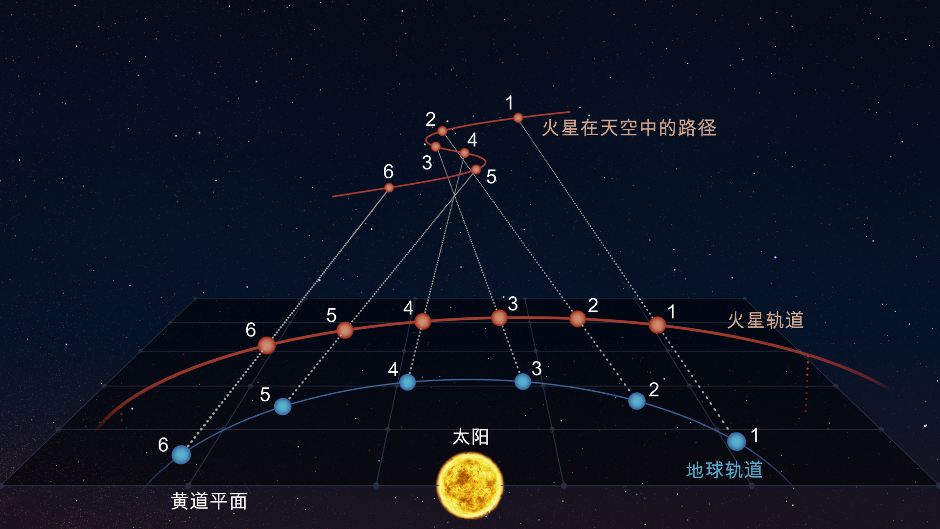 视逆行运动是由地球和其他行星以不同速度、在不同距离上绕太阳运行时产生的相对运动造成的。
