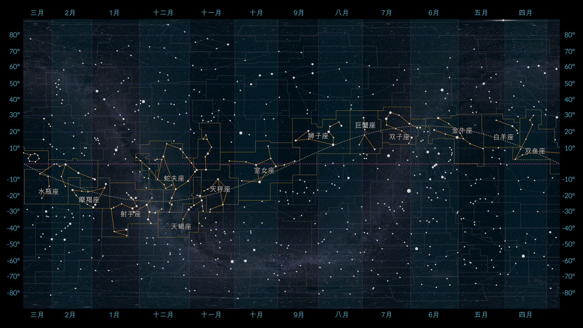 十二星座是指沿着太阳在天空中运行的轨道排列的星座,大致与传统的黄道十二宫相对应。虽然它们在历史上与占星术息息相关,但在现代天文图和观测中也被广泛使用。