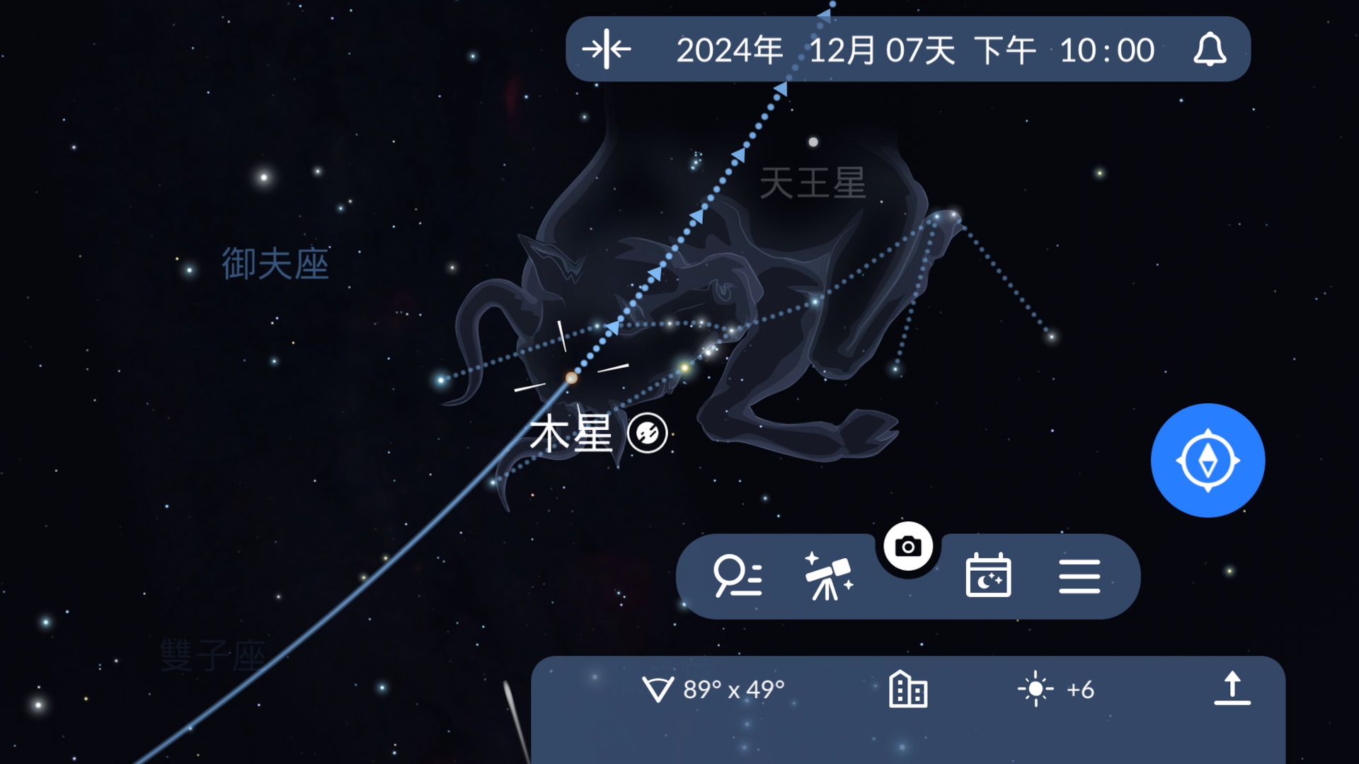 要快速查看今晚木星是否可見,請點擊應用底部的望遠鏡圖標,看看木星是否出現在列表中。