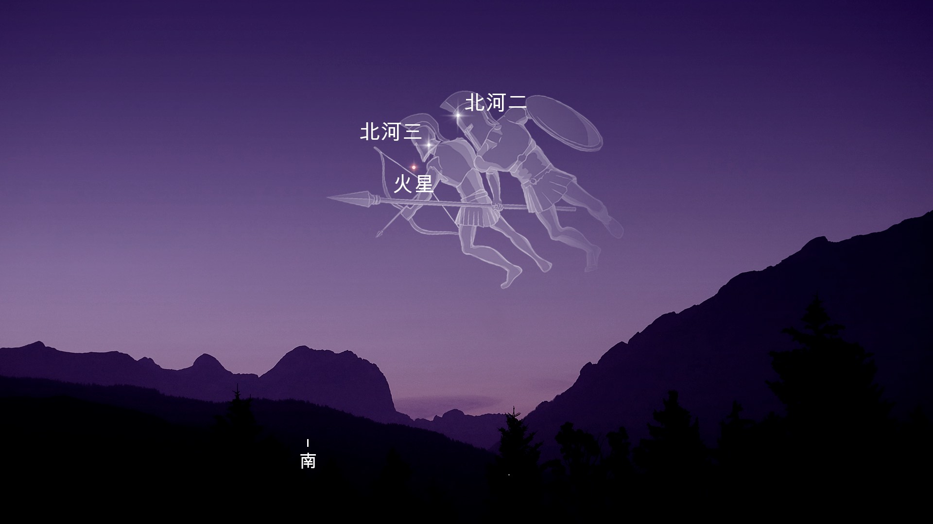 - 點擊藍色目標圖標,查看火星在沖日時刻的天空位置。