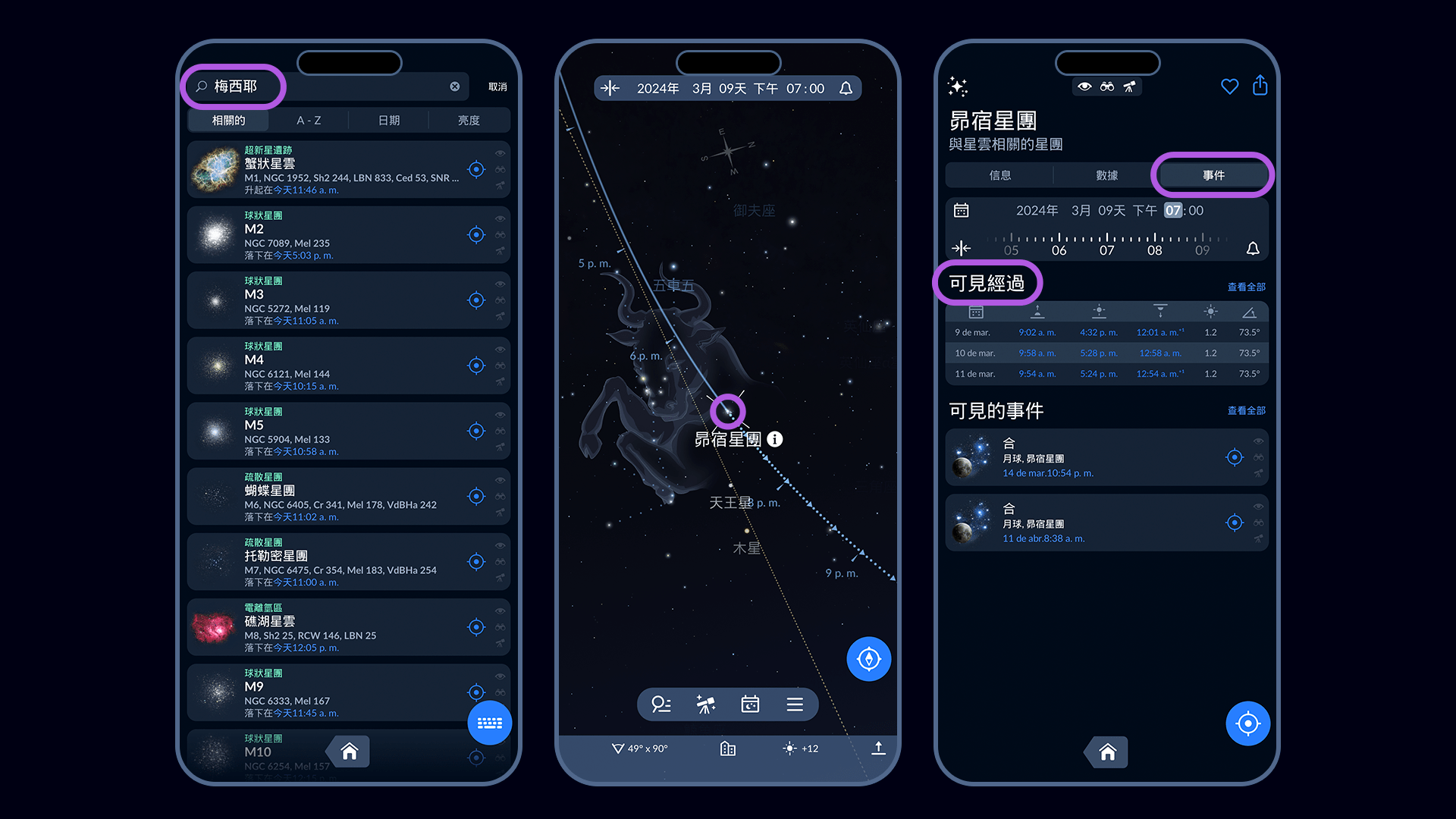 - 提前了解梅西耶天體,並嘗試在馬拉松比賽前找到其中一些。