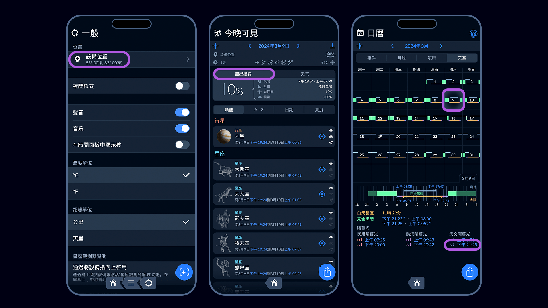 - 最佳觀測緯度:南緯20°至北緯55°之間