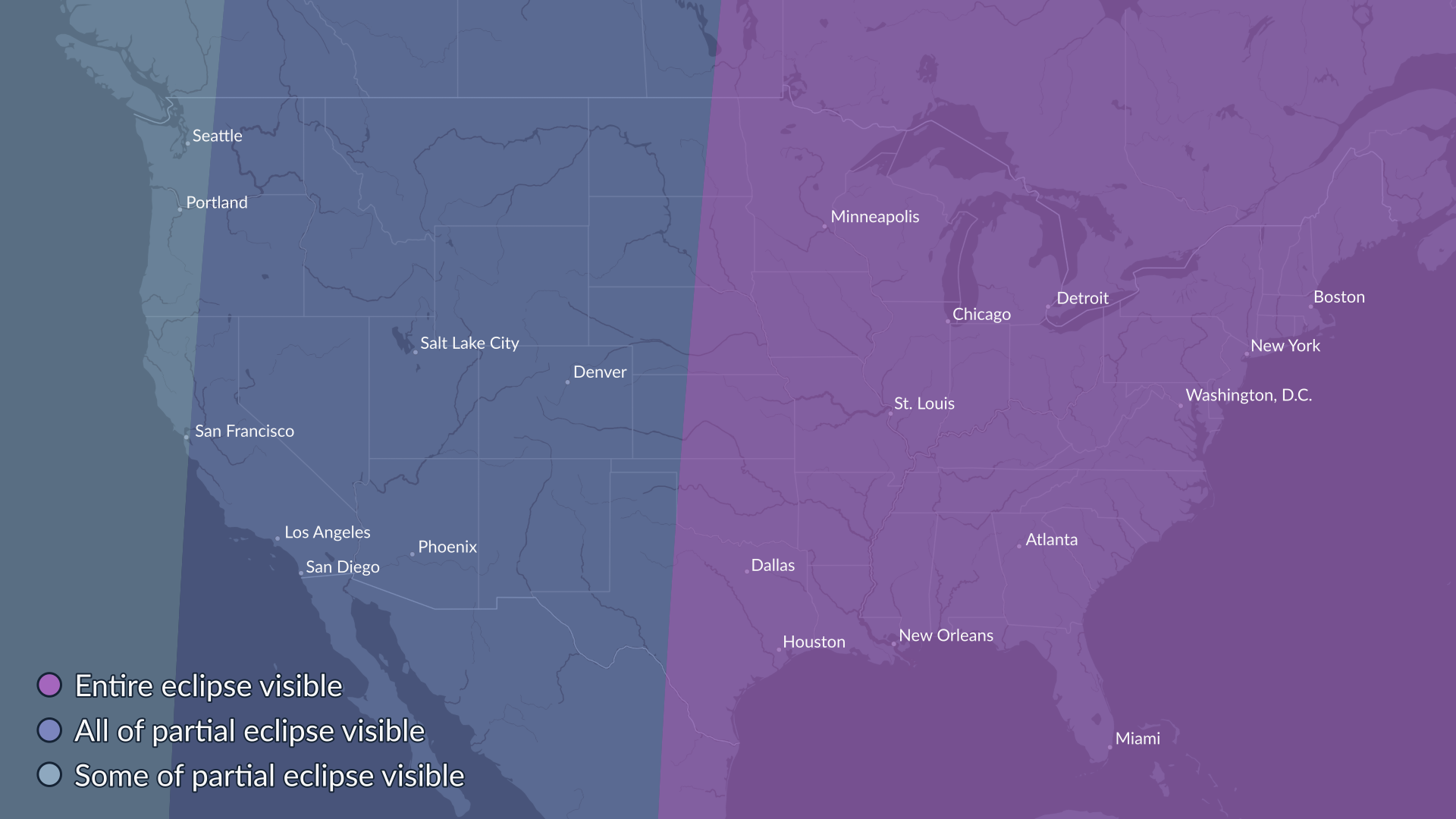 2024年9月18日的月偏食將在美國近一半的地區完全可見,包括紐約、華盛頓特區、邁阿密、達拉斯、底特律、芝加哥和堪薩斯城等城市。使用Sky Tonight免費應用檢查您所在的位置是否可以看到月食!