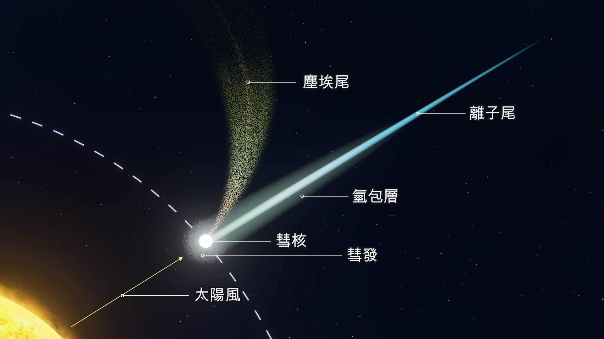 彗星是由冰、塵埃和岩石物質組成、繞太陽運行的太空天體。當彗星進入太陽系內部時,我們會在天空中看到它像一個帶著尾巴的模糊光斑。