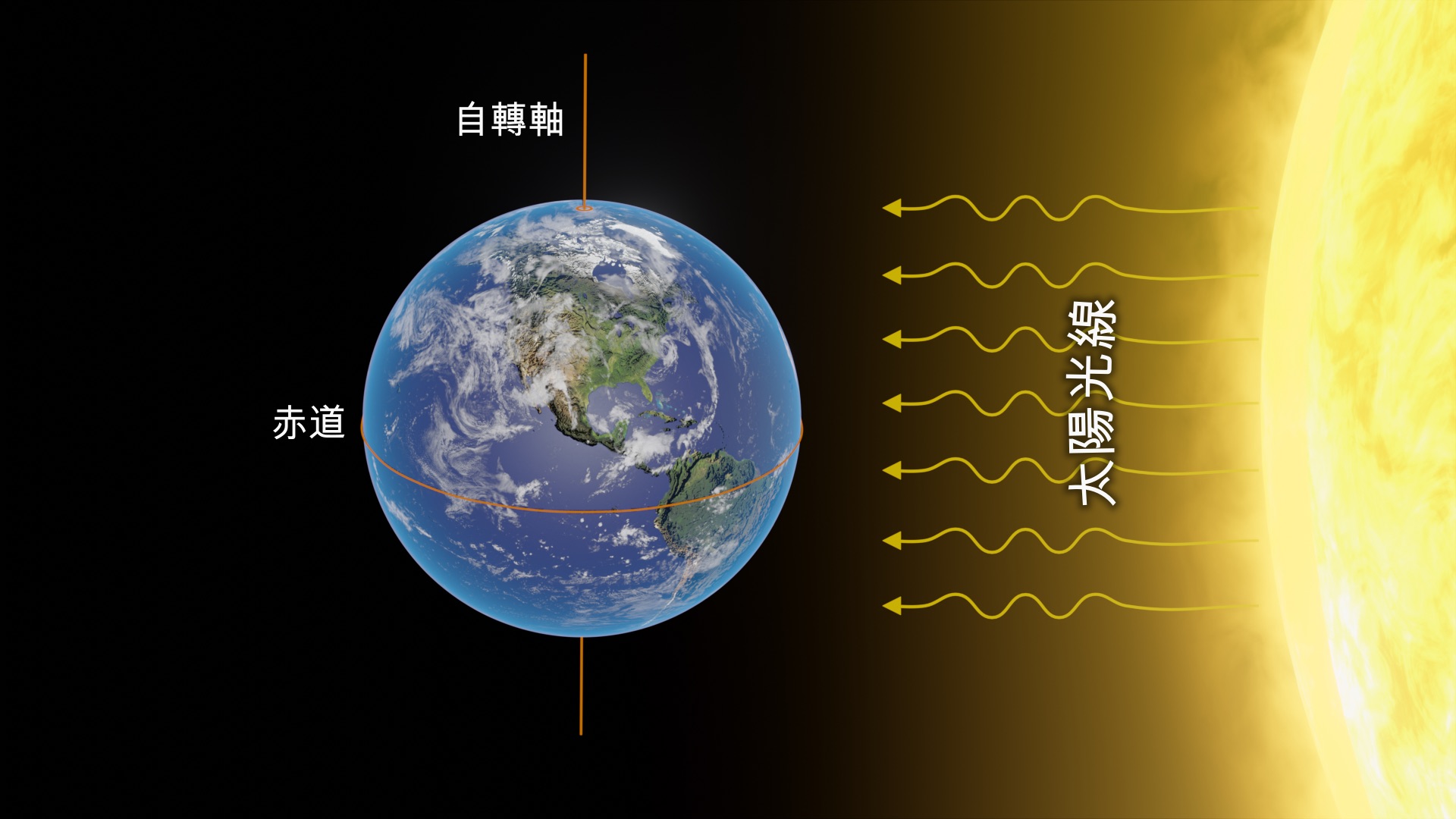 - 在分點時,地軸既不朝向太陽,也不背離太陽,因此兩個半球接收到幾乎相等的光照。而在至點時,地球的一個半球最傾向太陽。結果是,一個半球經歷一年中最少的日照,而另一個半球則享有最多的日照。
